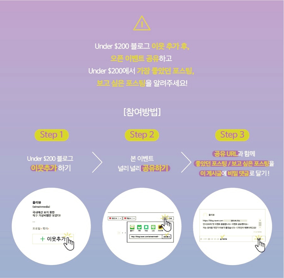 올리뷰 Under $200 블로그 공식 오픈 기념 이벤트 | Under$200이 200달러 쏜다!