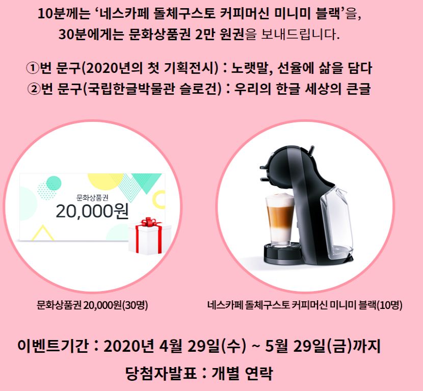대박선물 가~득한,한박웃음 손 글씨 공모전을 개최합니다!, 이벤트 ① - 국립한글박물관 한박웃��