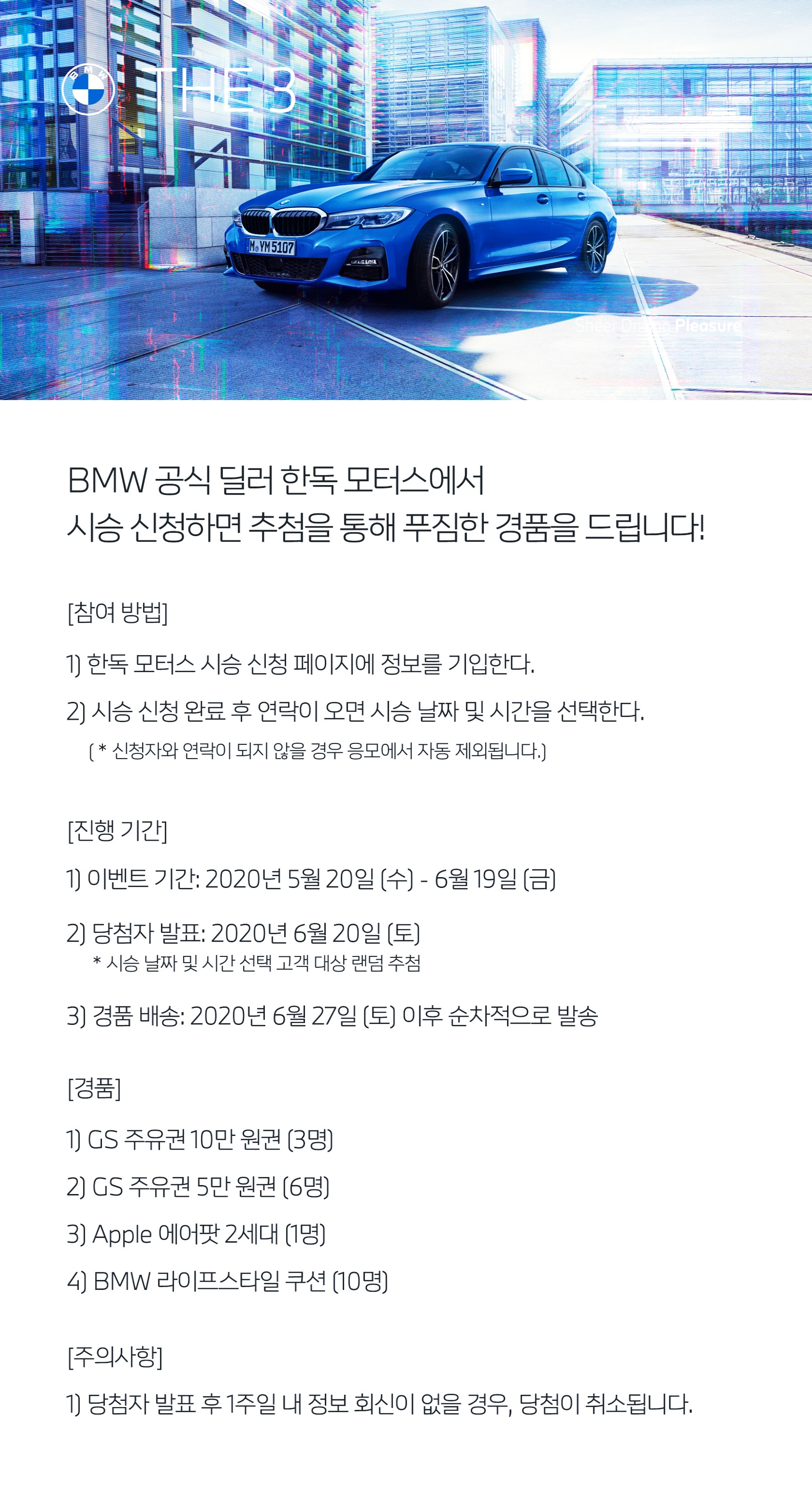 BMW 공식 딜러 한독 모터스에서 시승 신청 이벤트가 진행중입니다.