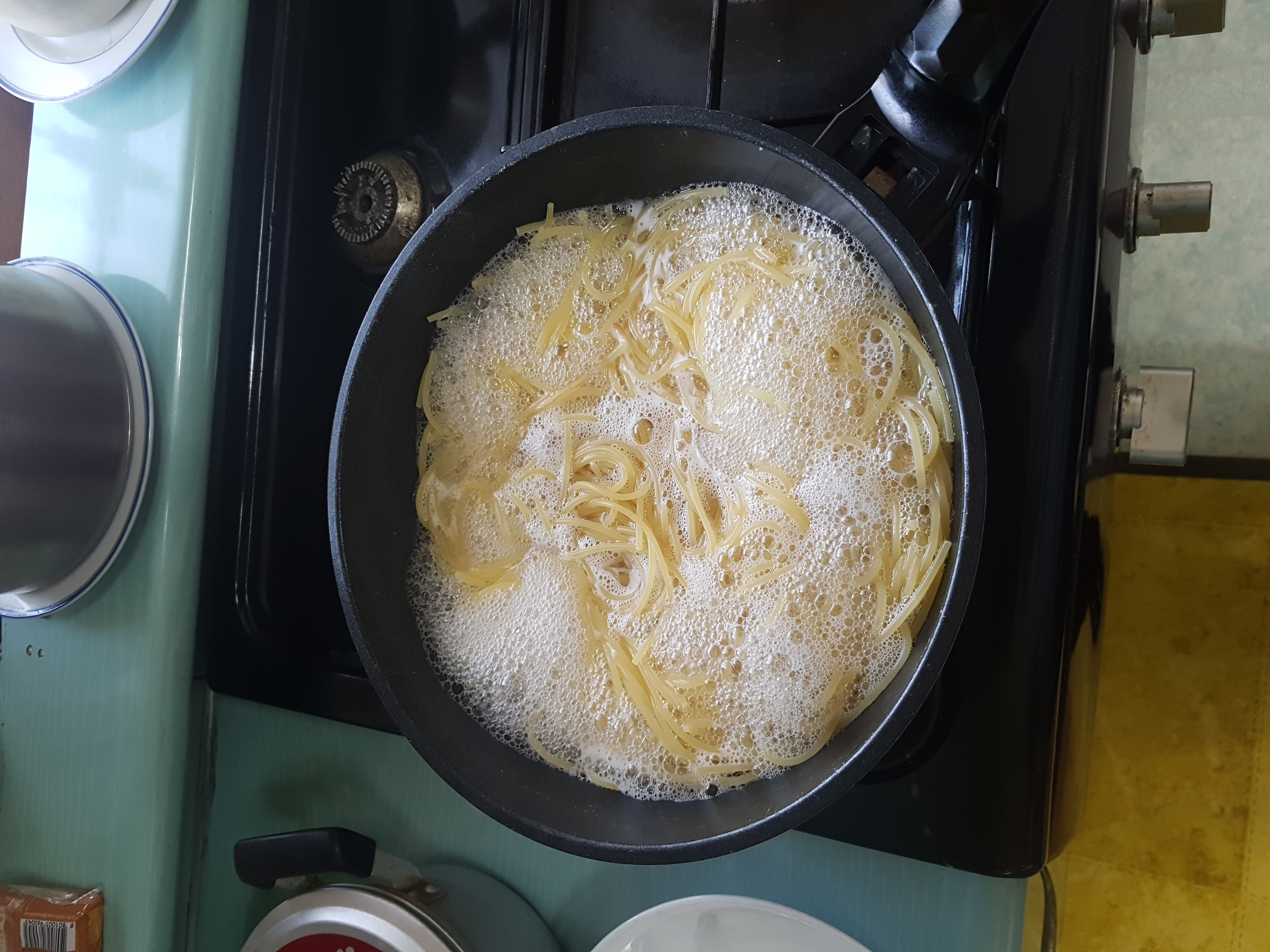 그리고 스파게티 면을 넣어서