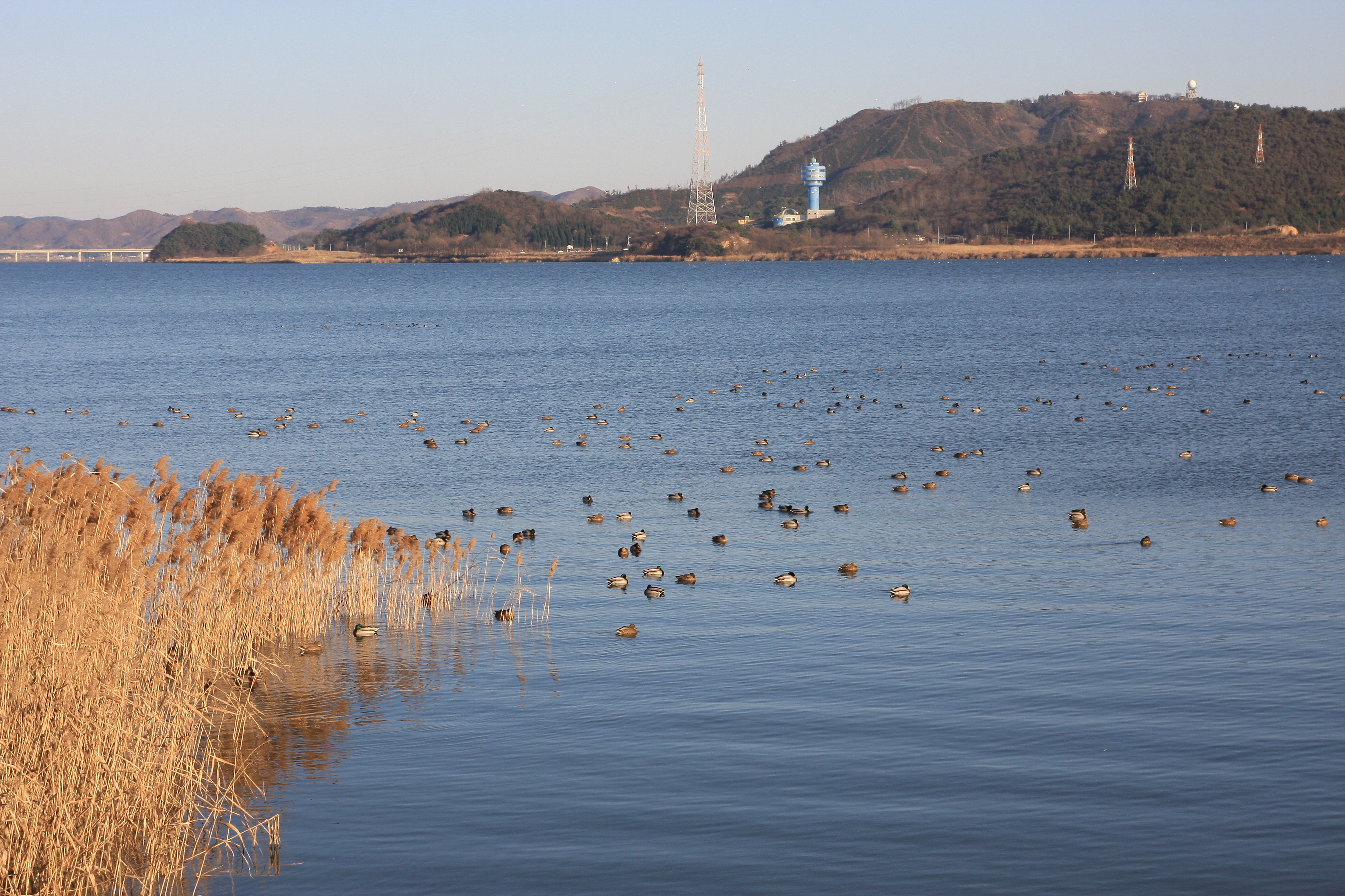 철새들은 자유롭게 날아서 금강으로 오네요.