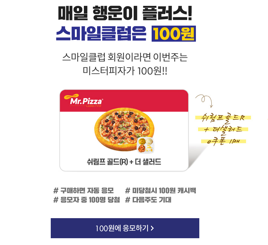 옥션 매일플러스 미스터피자 쉬림프골드R + 샐러드 100원 이벤트