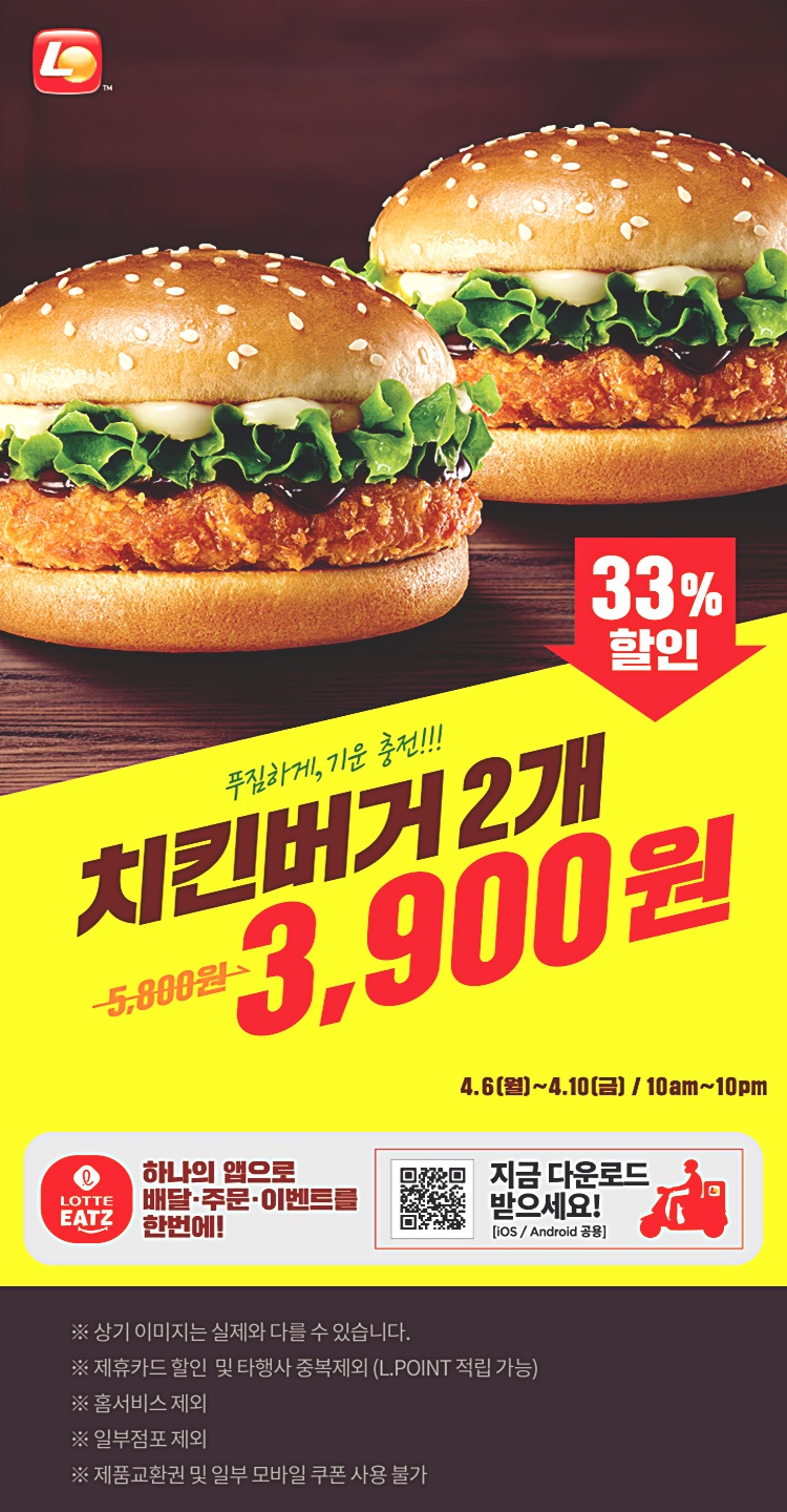 치킨버거 2개 3,900원 이벤트에 대한